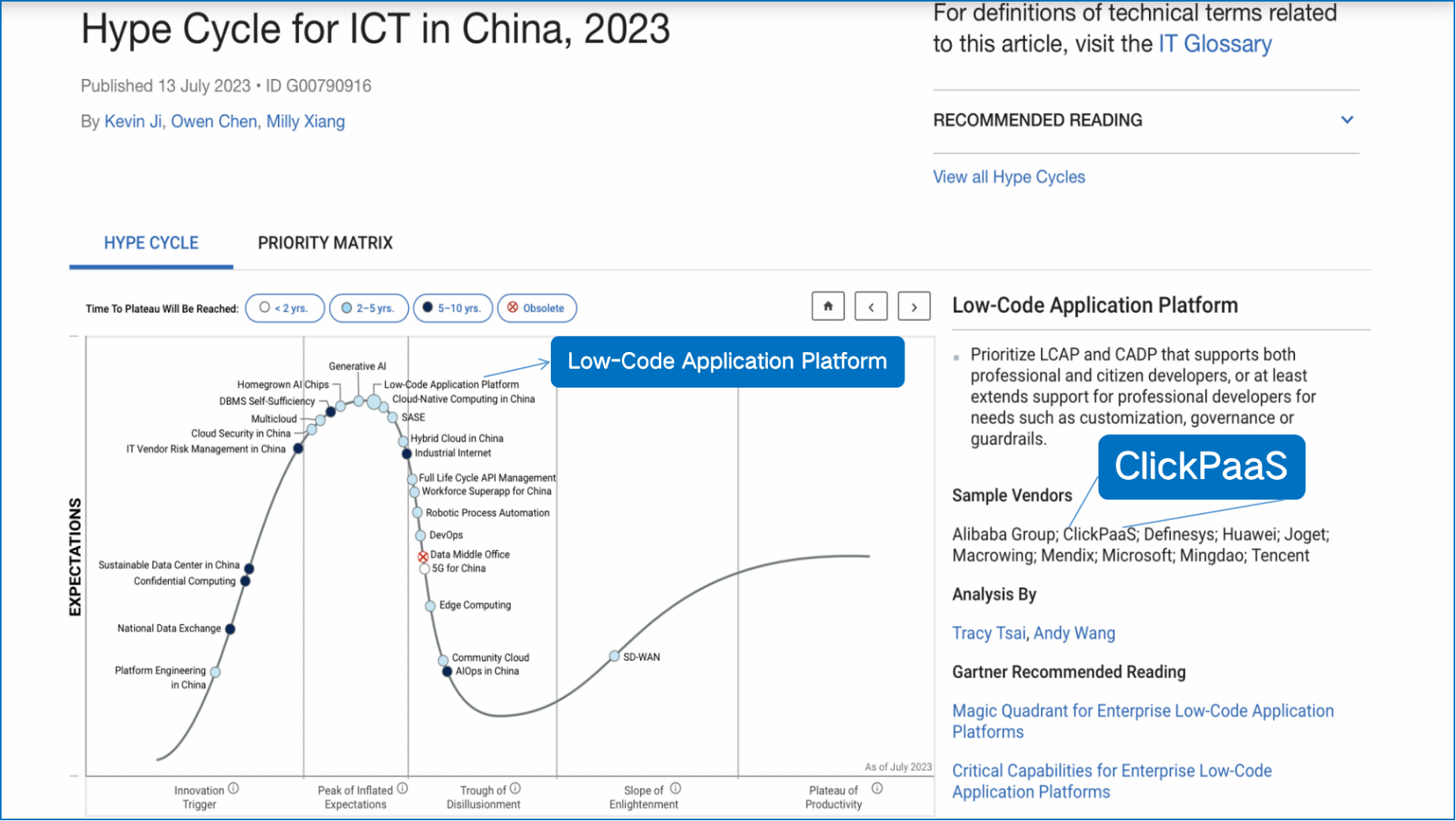 Gartner《2023中国ICT技术成熟度曲线》报告发布,凯发k8官方网站登录入选低代码平台代表厂商
